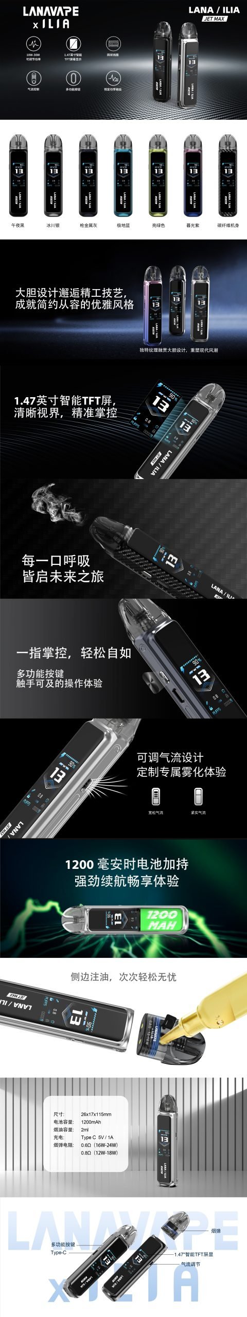 | 品名 | LANA × ILIA Jet Max 注油式電子煙主機 |